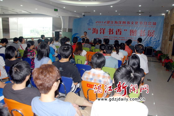 湛江新闻网9月27日讯 9月22日-27日,“海洋图书展”在湛江市图书馆和市新华书店举行,此展是湛江市政府举办的“2012年首届湛江海洋图书文化节活动”之一,值此活动之际,9月23日上午,湛江市作协主席、湛江师范学院副书记、教授刘海涛应组委会之邀来到湛江书城为市中小学生代表讲了一堂“网络时的新读写”专题讲座,受到大家的青睐。