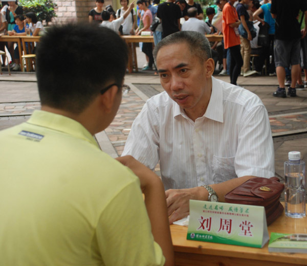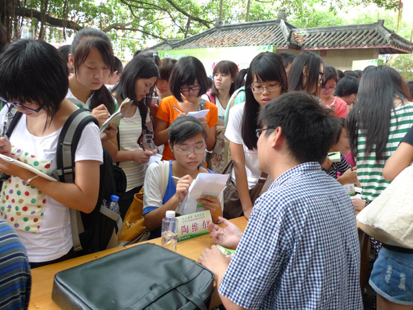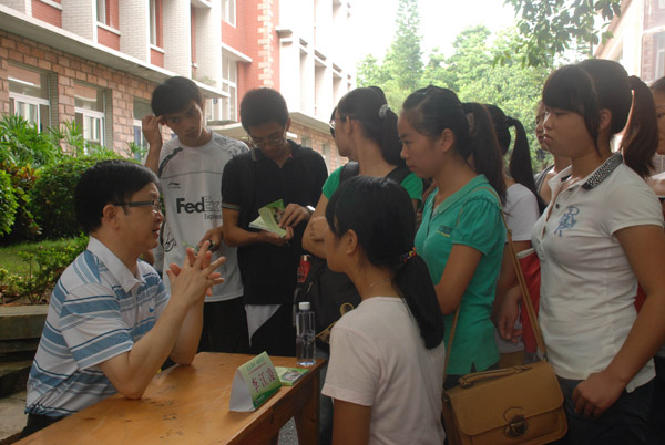 本次活动得到湛江师范学院老师的大力支持,学院领导、机关部处和各二级学院的教授博士踊跃报名参与。活动打破学院和专业的区分,同学们可以自由选择自己感兴趣的专业和学科领域的教授博士们进行交流,现场人头涌动,气氛热烈。其中部分学生带着笔记本前来,在和教授博士交流的过程中不停作记录,一些学生拿出笔记本主动向教授博士索要签名和赠言。教科院辅导员感慨:原来“90后”追星,不只是追文艺明星,也追学术明星。