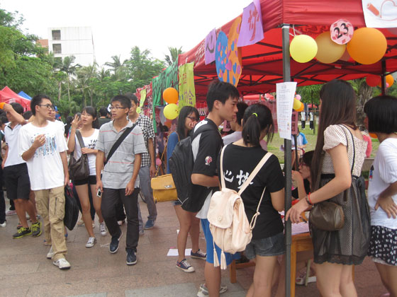 招新活动如火如荼地进行中,各校级社团的主要干部及理事,用早已提前准备好的本社团宣传单与海报来展示各自社团的特色,以吸引同学们的关注,并耐心地为有意加入其社团的同学一一解答他们的疑问。