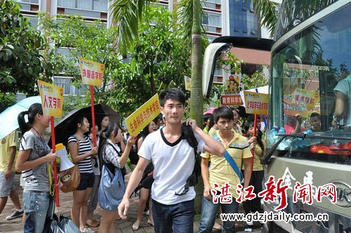 “我孩子第一次出远门,多少有点不放心,当然要陪同过来”、“他身上拿着几千块现金学费,大老远的不放心呀”、“湛师这里环境还不错,干脆来这里陪读算了,呵呵”……昨天迎接新生,笔者从与一些陪同来学校报到的家长们的聊天中得知,他们有的来自外省,有的只是广东省内,更有甚者只是湛江市内。很多学生还都是第一次独自出门,他们表示还是家长带着来比较安心。