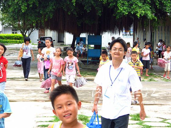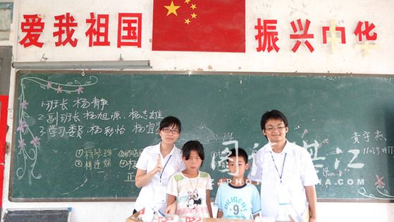 我们很快就吃完早餐了,由于宿舍在文车中学,离文车小学有两三百米;我们一路举着“广东省大学生社会实践队队旗”,齐穿庄重的队服、齐戴精美的工作证整齐的走进文车小学大门时,经过的村民都给予赞赏和肯定的目光。