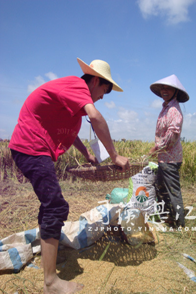 碧海银沙网8月11日讯 前不久,湛江师范学院 “红土情缘”福彩队一行15人,前往吴川市吴阳镇黄屋村帮助当地农民收割稻谷。