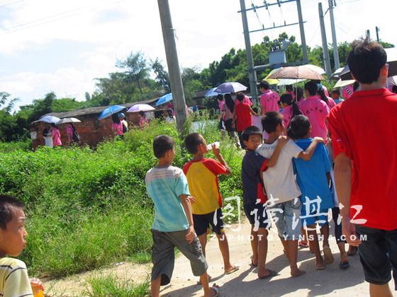 下午,紧接着便是“游村”活动。一路上,一群小孩子陪伴着。即使太阳再猛烈,也阻挡不了他们的激情。其中,有那么几位队员特受小孩子欢迎,一路都是被几个小孩拉着走,犹如弟弟妹妹们拉着哥哥姐姐们的手,多么温馨的一幕。