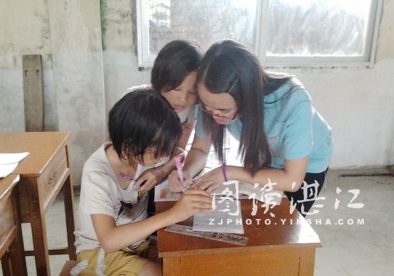 碧海银沙网8月8日讯 日前,湛江师范学院“旋风”服务队在茂名合江镇进行社会实践活动,已是第六天。虽然生活条件艰苦,教学等工作又难免使队员们感到劳累,但因为看到了孩子们对学习渴望的眼神和他们纯真的笑脸,即使再辛苦,大家都用无尽的毅力与耐性完成每天的工作,从不抱怨,从不放弃。