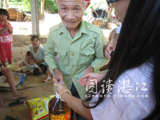 碧海银沙网8月4日讯 坐在电脑前,浏览着今天早上,湛江师范学院化学院“ 向日葵”三下乡服务队去探访孤寡老人的照片,发现捕捉到不少感动的瞬间。其中一张让我最感动的照片,是一位老人紧握着我们队员的手,眼里泛着泪光。