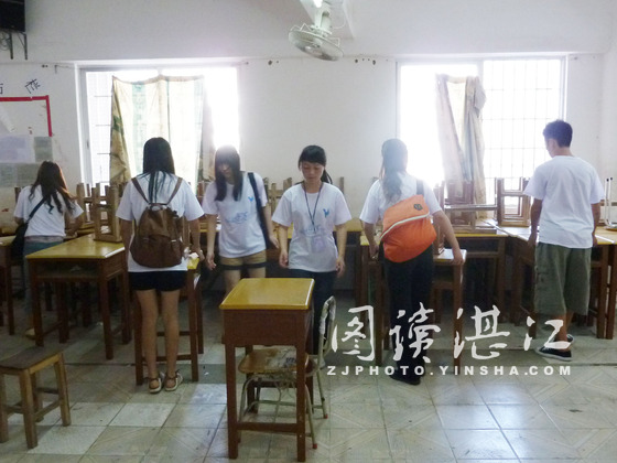 在太阳的热情迎接下,我们下车了,来到了一个充满古朴民间气息地方,而吴川二中就在其中。但我们来不及欣赏风景了,因为还有很多工作在等着我们呢,有种刻不容缓的感觉。搞清洁、迎新生、开会等等一系列的事情,让我们奔波于骄阳与汗水之中,但我们不埋怨,我们努力,我们自豪、我们满足、我们心安。