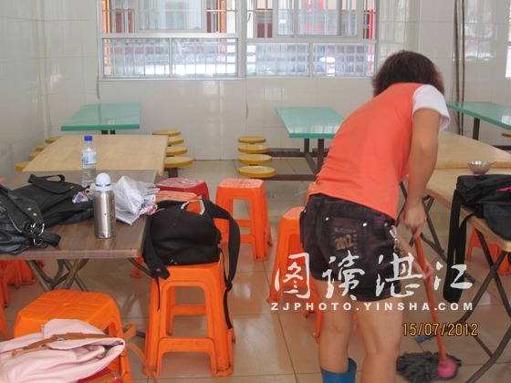 杨阿姨是吴川二中初中部食堂的煮饭阿姨,为人和蔼可亲,脸上总是带着亲切的笑容。学校已经放假了,她本可以在家享受她的假期。但是因为我们湛师“灿烂夏花”实践队来了,她又得重新回到她的工作岗位。尽管如此,她没有半句怨言,尽心尽力地解决我们的温饱问题。清晨,我们还在梦乡的时候,她已经开始为我们准备早餐;中午,她一个人忙着为我们张罗午餐和烧开水;晚上,我们吃过晚餐之后,她还在厨房里洗碗拖地,一直忙到八九点才吃饭……