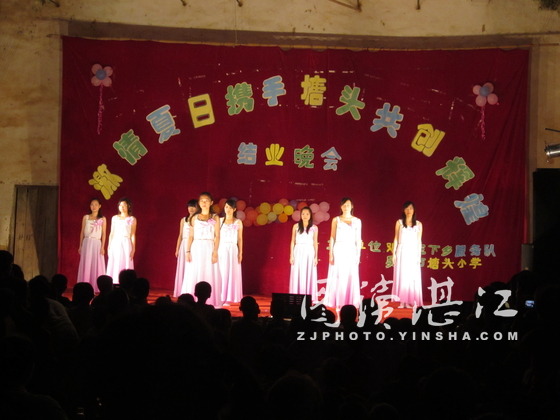 碧海银沙网7月26日讯 7月18日这个特别日子的晚上,尽管没有璀璨的明星,却有绚丽的舞台,有湛江师范学院邓小平理论研究协会三下乡服务队的小老师们,更有塘头小学可爱孩子们动听的歌声和唯美的舞姿。