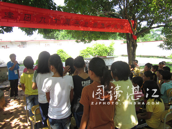 碧海银沙网7月26日讯 那天是我们湛江师范学院“宣翔山茶”服务队在山茶小学实践的最后一天,当天下午我们举办了“建团90周年暨师生欢送会”活动,在唱红歌环节,四,五,六年级的同学慷慨激昂的演唱了《团结就是力量》等红歌。