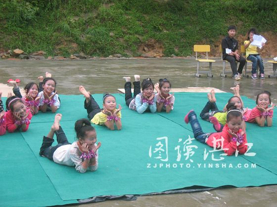 下午,天空放晴,使得本因上午连绵下雨而转入室内的舞台得以重见天日,服务队队员与学生合作,迅速在学校操场上搭建了舞台。于是,在服务队队员蔡浣丽、苗朋小学学生梁明龙和余宏美三位主持人的宣布声中,文艺汇演正式开始。