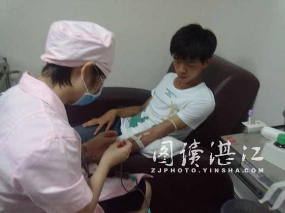 碧海银沙网7月22日讯 7月11日中午,就读于湛江师范学院而家在信宜农村的学生杨连,其母亲农忙时因在楼顶晒谷中暑,不幸从4楼摔下来造成腹内大出血,紧急送往茂名市人民医院抢救。湛师 “绿光之眼”创卫实践队有队员获悉后,即赶住茂名为受伤的农民杨阿姨献血。