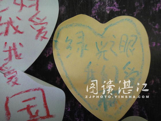 其中有的孩子写道:“希望人人讲卫生,不要随便扔垃圾。”“希望我家门前的垃圾可以少一点,那条小河可以不那么臭,我就可以在那里玩了。”此次,“绿光之眼”创卫队以“管住脏乱差,留住真善美”为主旨,与孩子们一起建起“绿色之心”,为当地居民宣传创卫活动,同时代表孩子说出“还我美丽之家,创卫靠你我他”的心声。