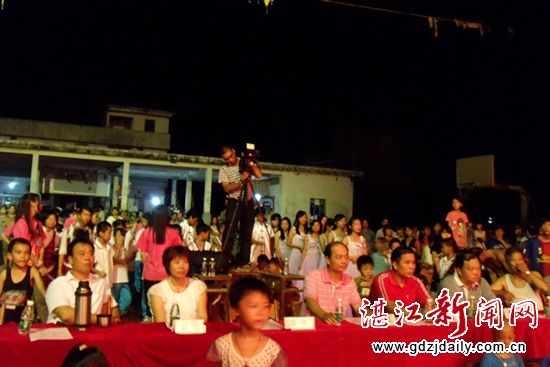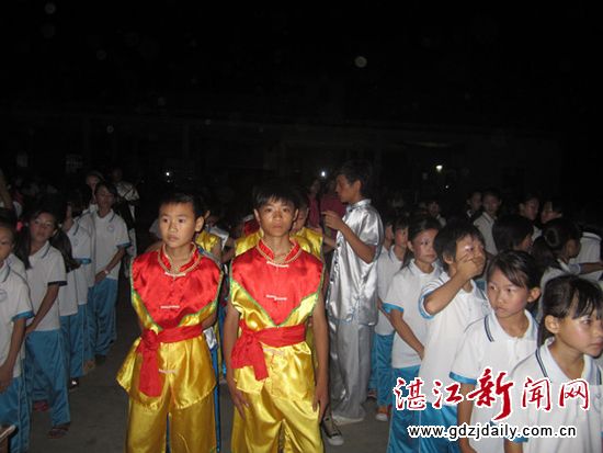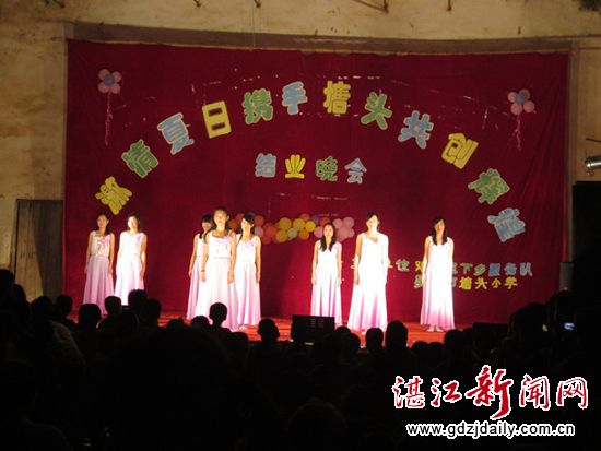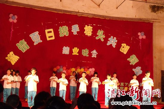 湛江新闻网7月20日讯 7月18日晚,湛江师范学院邓小平理论研究协会三下乡服务队在吴川市塘尾街道塘头俱乐部舞台举行了本次在塘头小学进行的为期10天的暑假三下乡活动的结业晚会。本次三下乡活动得到了村委领导、学校领导及深圳交委的高度关注和大力支持。塘头社区书记凌盛华,主任凌康福,杨土华,干部凌宇章,塘头小学校长陈拓以及各位干部代表作嘉宾出席了本场晚会。整场晚会吸引了众多观众,气氛非常火爆。