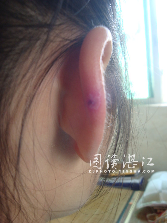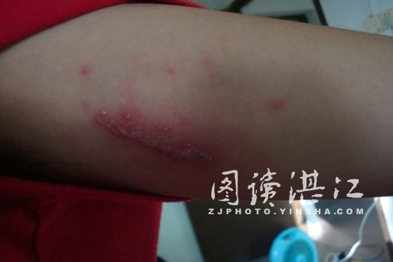 笔者看到,大部分队员受到了虫子的侵害,手脚、脸蛋、脖子等地方均出现了红肿起泡的过敏现象。笔者了解到,为了把第二天的支教活动完美开展,该实践队队员常常备课到凌晨,而彻夜通明的灯火正是类似飞蛾的虫子的最爱,看到灯光它们就猖狂地一窝蜂围了过来,当它们触碰到人们时,会在人们皮肤上留下它们特有的有毒的粉状物,致使人们皮肤出现溃烂现象。