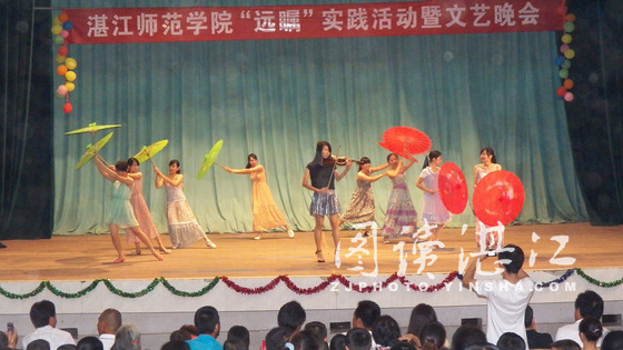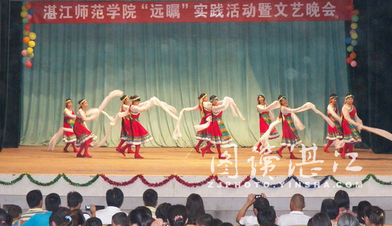 碧海银沙网7月20日讯 舞姿曼妙展示青春风范,歌声悠扬彰显民众情深。7月17日晚,湛江师范学院“远瞩”社会实践队活动暨大型文艺晚会在遂溪县河头镇影艺中心隆重举行。晚会现场座无虚席,人头攒动,气氛异常火爆,节目丰富精彩,千余名当地民众分享了文艺盛宴。
