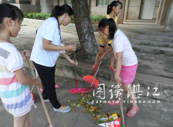 碧海银沙网7月19日讯 为让学生对环保和创卫活动有更深的理解,7月15日,湛江师范学院“寸草行”实践队在市十九中,组织学生们参加以“创卫活动齐参与,卫生教育进调顺”为主题的创卫活动。