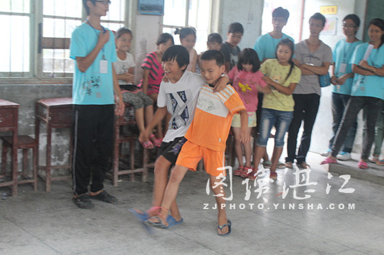 碧海银沙网7月19日讯 为丰富学生的课外生活,增强师生之间以及学生之间的交流与合作、增加支教内容的多样性和增强学生的体质。湛江师范学院人文学院“两情湘粤”实践队于2012年7月17日下午和湖南西城实业希望小学的同学们一起举办了一个富有生机和活力的趣味运动会。运动会的内容包括“两人三足”,“激情接力”,“真假难辨”、“谜语大竞猜”、“背夹气球”、“无敌风火轮”、“抢板凳”等7项内容。