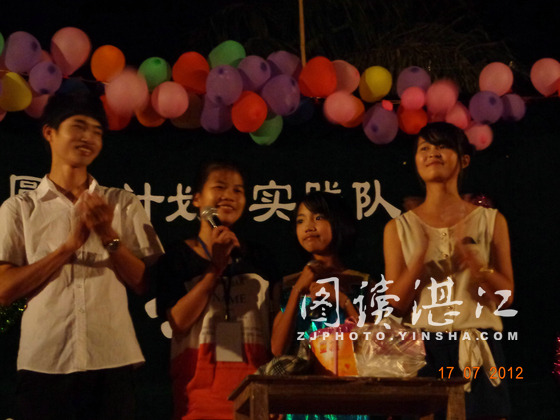 碧海银沙网7月18日讯 7月17日晚,湛江师范学院“圆梦计划”实践队“青春奉献”文艺晚会在吴川市振文镇石碇小学隆重举行。出席晚会的嘉宾有该镇领导邓天恩、石碇村村干部邓上康、石碇小学主任李志明等。