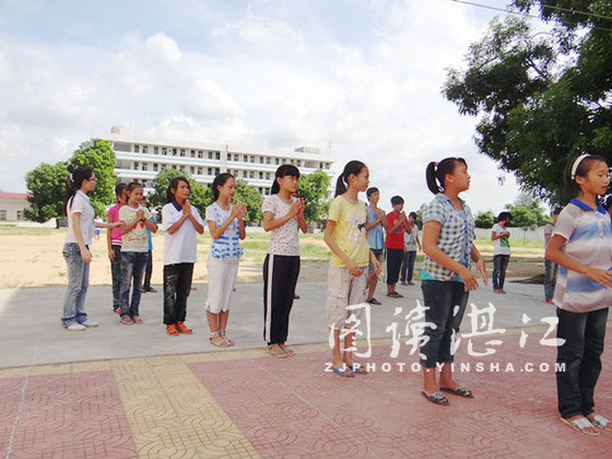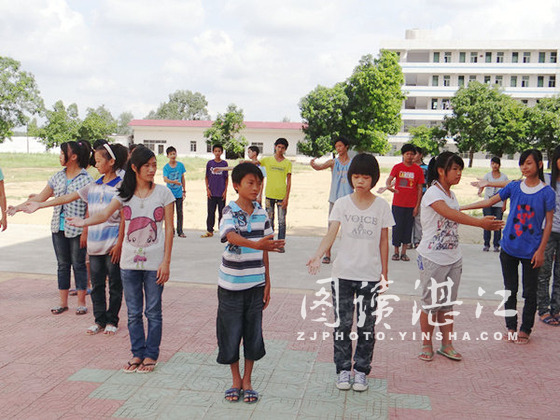 碧海银沙网7月18日讯 7月17日,湛江师范学院“传承”实践队给南三第二中学的学生们上,了一堂室外手语课。