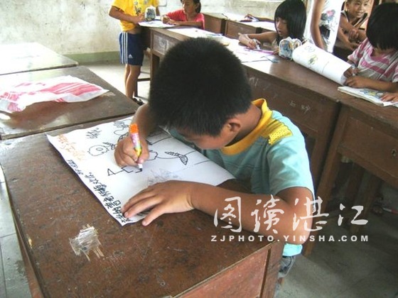 碧海银沙网7月18日讯 为庆祝建团90周年,近日,湛江师范学院“梦想地理一”社会实践队在下乡支教的学校,组织学生沙进纤行绘画比赛。