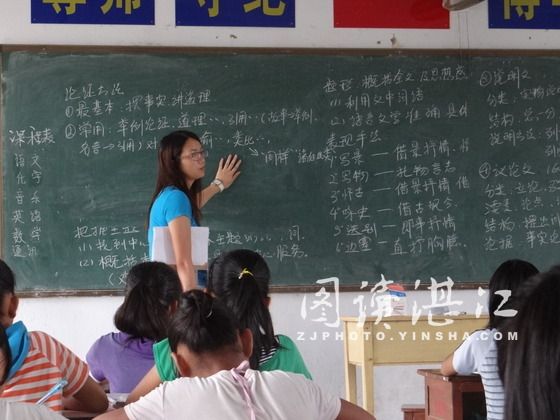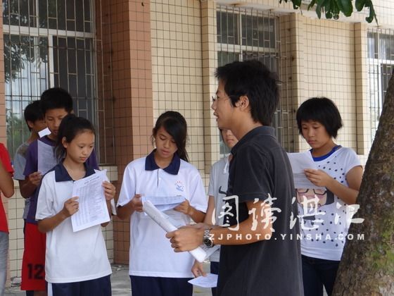 碧海银沙网7月18日讯 7月16日下午16时许,又是南三二中学生们上课时间。湛江师范学院“传承”实践队的小老师杨大海,正在初三A班给孩子们兴致勃勃地上语文课,其幽默风趣的表达形式,给在盛夏闷热的天气里上课的孩子们带来一丝快意。、