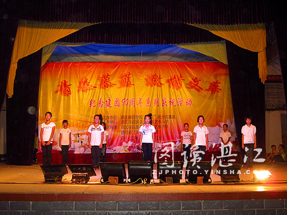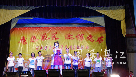 碧海银沙网7月18日讯 7月16日晚,湛江师范学院“慕蓝”社会实践队“青春慕蓝;激情文车”成果汇报文艺晚会在遂溪县黄略镇文车村文化广场隆重举行。晚会节目丰富精彩,吸引了不少附近的居民前来观看,观众人数达上千人。现场气氛热烈,掌声和欢呼声不断。