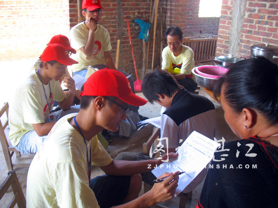 在高辣小学,贷款小组拟定了两份调查问卷,一份是针对高中毕业生的,而另外一份是针对家长的。贷款小组组织了5名成员,头戴红帽子,身穿黄灿灿的贷款宣传服装,顶着烈日,挨家挨户去做贷款问卷调查和宣传贷款知识。对于刚毕业的高中毕业生,他们压根儿就不了解贷款知识,也不知道怎样申请贫困认定。他们大多数认为:家里没钱供应自己读大学,那他们只能另谋出路。听了贷款小组成员对贷款知识的一一分解,他们立即转悲为喜,眼睛里流露出对知识的渴望。而对于家长,他们对于贷款知识更加迷茫。在他们当中,有很多家长是不认识字的也有很多是听不懂普通话的。面对他们的迷茫,贷款小组的成员一一为他们拨开迷雾。在这个过程中,贷款小组的成员倾注了全部的耐心,不断重复为他们讲解,在此同时,他们也在无意之间创造了普通话与当地话的杂交话,因为很多队员不会说当地话的,但这并不阻碍他们的工作顺利进行。
