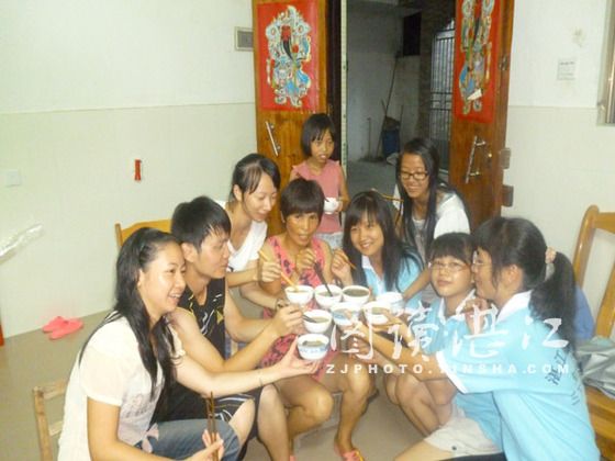 碧海银沙网7月17日讯 7月14日晚,吴阳镇显得特别闷热,空气里难得有一丝凉风。但离上能小学不远的一个屋子里,却灯火通明,不时传出阵阵欢愉的笑声。原来是湛江师范学院“知行”三下乡实践队的队员们,正围在一起喝着曾姨在自家煮的糖水。
