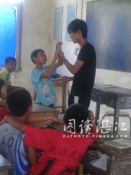 碧海银沙网7月17日讯 7月14日,是湛江师范学院“梦启航” 三下乡服务队在雷高镇下尾村下尾小学支教服务的第六天,队员郭顺然特意为同学们准备了一节特别的课程----魔术课,给学生带去欢乐。