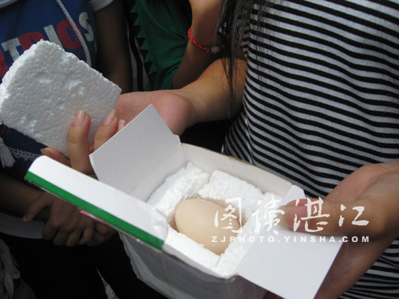 碧海银沙网7月17日讯 “护蛋”—使用一些材料动手制作鸡蛋保护装置,参赛队伍自由选择高度将鸡蛋以自由落体的形式落下,护蛋装置在下落过程中不解体,下落后鸡蛋完好。
