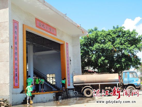 调顺村村委调来水车协助队员清洗临时宿舍(黄济高 摄)