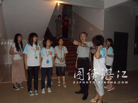 在实践队队长的带领下,熊家良教授在一楼大厅观察了高州第二小学的周边环境。短暂的交流中,熊家良教授了解到该队成员的来源、人数及课程设置情况并对于外校同学的加入,充分肯定了该队队员的宝贵友情。紧接着,熊家良教授随着“探索者”队员们登上六楼,来到该实践队的宿舍,对队员们的住宿、伙食环境等进行了观察。熊家良教授表示,看到队员们的集体大宿舍,不禁想起他当时上大学时类似的宿舍,并对该队队员的和谐相处大加赞赏。