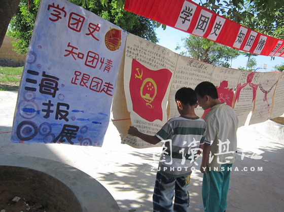 碧海银沙网7月16日讯 7月15日下午,湛江师范学院化学院“向日葵”实践队在下乡支教的恒建小学,举办了一个以“学团史,知团情,跟团走”为主题的海报展。