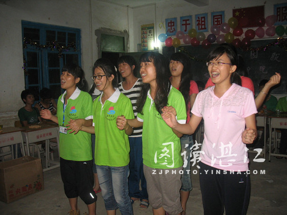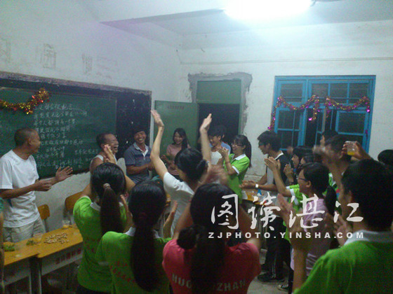 碧海银沙网7月15日讯 7月14日晚上,北灶小学教学楼里传来一阵阵歌声、掌声和欢笑声。原来,这是湛江师范学院“希望家园”的队员与当地的乡村老师们共同举行的内部晚会。