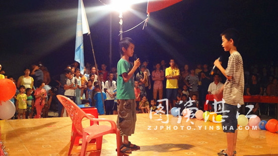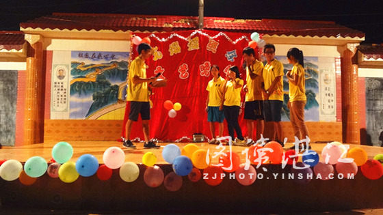 是日晚7点40分,异彩纷呈的文艺晚会拉开帷幕。 “那年初夏”服务队队员们表演了动感十足的体育舞蹈,触碰心弦的《感恩的心》手语,爱国教育话剧《南京魂》。余村小学的学生们的表演节目更是让人眼前一亮,洗涤心灵的《虫儿飞》童声合唱,生动活泼的小品《学英语》,环保时装秀等等。这些节目给整个晚会增色不少,吸引了大批村民到场观看,台下不时地传出阵阵掌声。