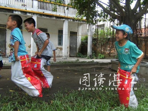 阴凉的树下是一只只“袋鼠”在蹦蹦跳跳。这个活动有了老师的参与,学生显得更加兴奋,表示势必与老师们“一分高下”。如此“豪言”让老师们不敢怠慢,努力应战,但事实上,老师表现的似乎比学生显得笨拙一点,逗得学生们哈哈大笑。