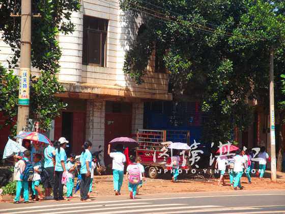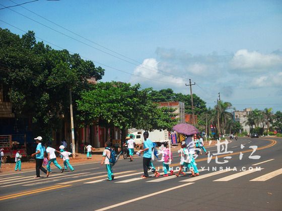 碧海银沙网7月14日讯 湛江师范学院“绿夏”三下乡服务队到雷州龙门德地小学支教后,发现该校地处207国道旁边,车辆来往密集,小学生的安全意识又较为薄弱。为把保障学生的安全落到实处,近日,队员们决定每天放学后,都要护送小学生过马路。