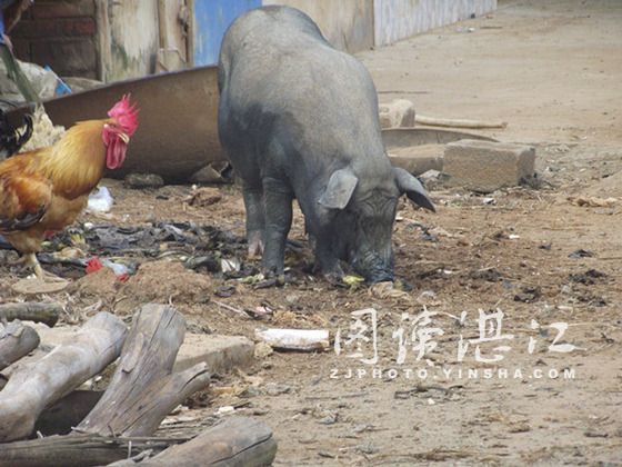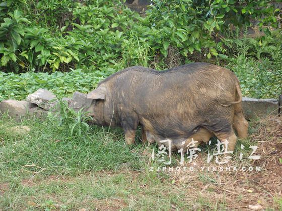 当队员们路过一座庙时,发现一头猪竟然在吃草,鼻子闻着,嘴巴在嚼着,眼里完全容不下别人的存在,一心一意吃它的草。走过几步,发现屋子旁边建着一个小棚,里面住着的是竟然是鸡和猪。