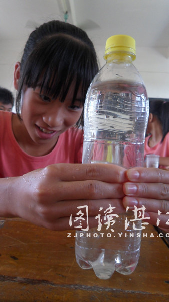 碧海银沙网7月13日讯 科技无处不在。湛江师范学院“承希”实践队在下乡支教中,继续带领松柏小学的学生们探寻科学的奥秘。7月12日,实践队的小老师走进松柏小学五年级的教室,带上一如既往的简单实验用具:小小的玻璃质漂流瓶(既浮沉子)、透明空塑料瓶、水。