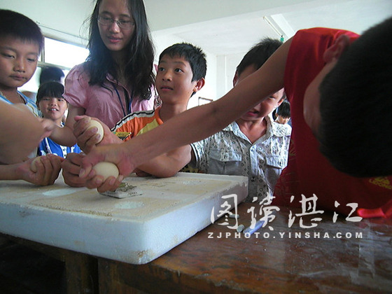 碧海银沙网7月13日讯 为进一步激发学生们的学习兴趣,湛江师范学院“承希”实践队在下乡支教中,与专业相关的特色活动还在继续。7月11日,“承希” 队员向松柏小学的学生们,揭示了一个小小鸡蛋中鲜为人知的秘密。