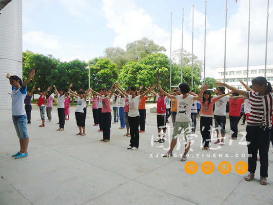 碧海银沙网7月11日讯 7月11日,遂溪县草潭镇下六中学生响起了欢快的音乐,学生们跳起健美操。这是湛江师范学院保健康复协会组织开展第二课堂活动的情形。