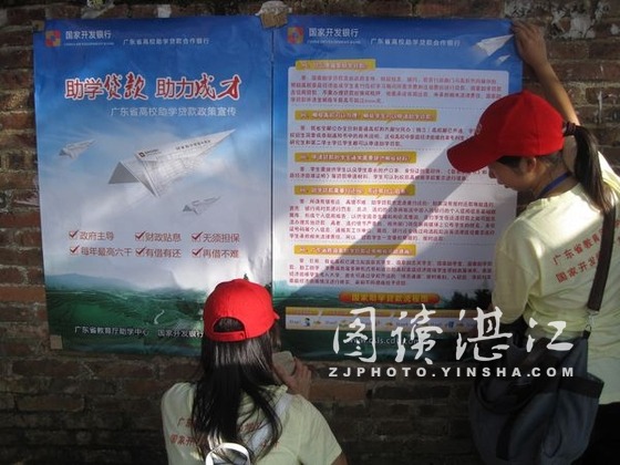 碧海银沙网7月11日讯 为进一步加大高校助学贷款的宣传力度,让助学贷款政策家喻户晓,深入人心,广东省教育厅与国家开发银行广东省分行于今年暑假开展以“资助育人,助力成长”为主题的“助学贷款政策下乡行”活动。湛江师范学院“旋风”服务队积极响应省厅精神号召,努力配合省厅工作,于今年暑假组织“助学贷款政策下乡”宣传活动。