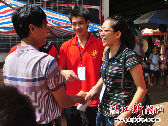 车缓缓地开进学校大门,当地领导早早就在那里等候了。不等我们下车,该地书记已经走过来与辅导员陈静老师、队长等亲切握手。康港圩书记王兆金表示,他们非常欢迎湛师的三下乡实践队到当地进行三下乡实践活动。作为第二批来这里实践的队伍,他希望“向阳”实践队继续发扬奉献精神,做出比去年更好的成绩。