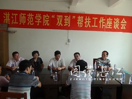 在座谈会上,锦和镇委书记朱文伦感谢湛师领导和教职工多年来对金门村帮扶工作的积极贡献。他说,湛师领导经常亲自挂帅,率队前来考察、慰问,村民们非常感动;湛师校本部和基础教育学院派出的两位干部,长期进驻金门村,具体指导扶贫工作,工作非常认真负责;湛师在智力扶贫、资金扶贫、精神扶贫等方面全方位帮助,不仅资助金门村发展集体经济,还想方设法帮助村民改善生活条件和环境,使金门村的经济形势以及精神风貌发生了可喜变化。湛师领导在座谈会上表示,金门村村民勤劳善良,起早摸黑,千方百计脱贫致富,精神可嘉;湛师将力尽所能,继续做好这项益民工作;希望村委会进一步科学规划、选准项目,率领全村人民走上共同富裕的道路。