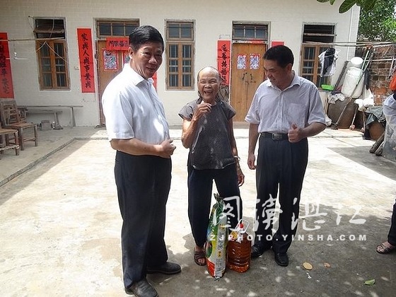 碧海银沙网7月7日讯 为贯彻落实省委关于组织开展扶贫济困日活动的要求,受湛师党委书记梁英和院长罗海鸥的委托,7月6日,湛师领导刘海涛、李永全,率领扶贫慰问组赴徐闻县锦和镇金门村,慰问贫困户;察看湛师资助的鱼排养殖项目,以及捐资修建的道路。锦和镇委书记朱文伦,原副镇长李宏法,村委会干部等陪同慰问及现场察看。
