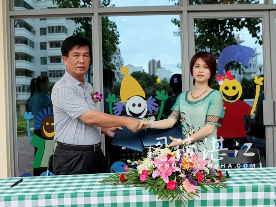 碧海银沙网6月28日讯 6月26 日下午,湛江师范学院基础教育学院第三十六个实习基地签约挂牌仪式在赤坎星宝外国语幼儿园举行,基础教育学院黄亚新副院长及职能科室负责人、香港星宝教育集团梁亮星董事长和部分师生参加了签约挂牌仪式。双方就教学、科研、职培训等领域等方面开展合作达成了一致意见。黄亚新院长和梁亮星董事长分别代表双方学校签署了实习基地协议书。