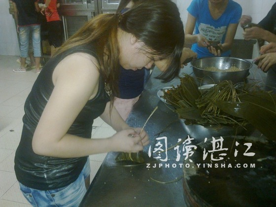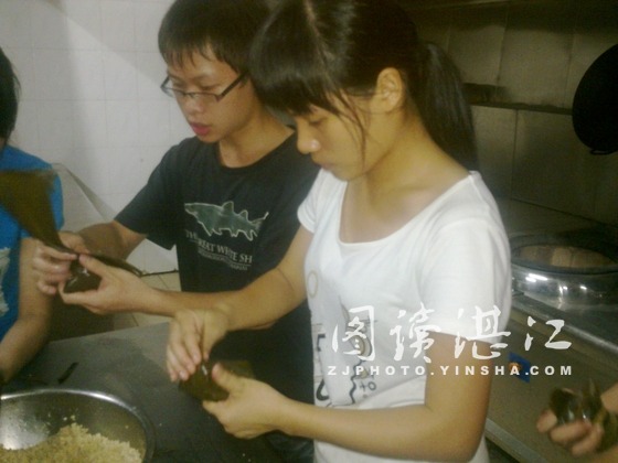碧海银沙网6月23日讯 端午将至,湛师10烹饪与营养教育班部分未能回家过节的学生汇聚在烹饪操作室,他们决定自己动手包粽子,过一个不缺粽子的端午节。他们特地请来了面点专业课的庞老师过来指导。