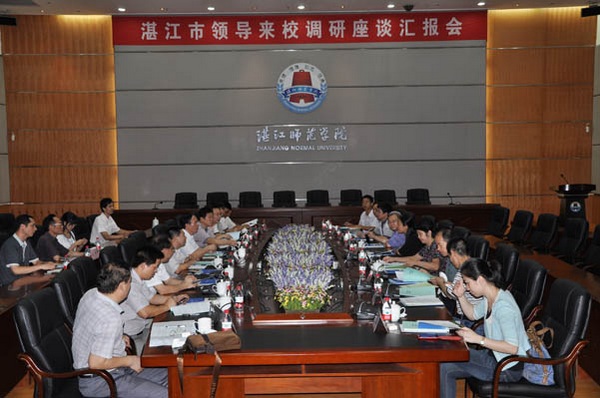 广东省教育厅网6月20日讯 6月13日下午,湛江市委常委、宣传部部长卢瑜到湛江师范学院开展调研活动。湛江市委宣传部调研员麦小林、市社科联主席余伟民以及市委讲师团、市文明办、市委宣传部理论科和高校科等有关人员陪同调研。湛江师范学院院领导梁英、刘海涛、黄钢等参加了调研活动,党委办公室、院长办公室、党委宣传部、学生工作部、科技处、雷阳文化研究所等有关部门负责人参加了座谈会。座谈会由黄钢副书记主持。
