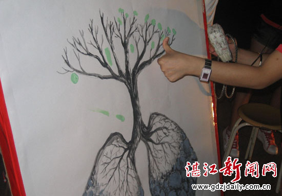 同学们在“清尘之树”海报上按下自己的绿色手指印