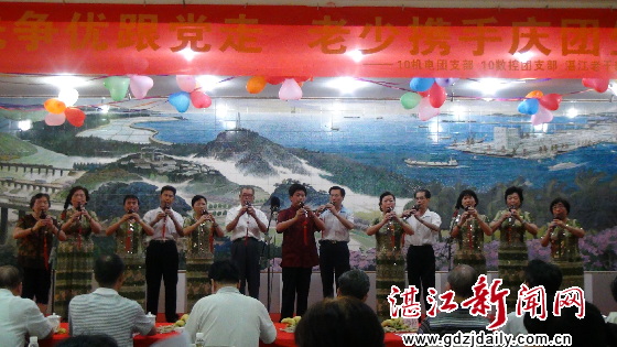 湛江新闻网5月27日讯 5月25日下午,由湛江师范学院物理学院与湛江市委老干部局联合主办、物理学院10机电、10数控团支部、湛江市老干部大学共同承办的“创先争优跟党走,老少携手庆团生”文艺联谊活动在市老干部活动中心2号楼2楼会议厅举行。
